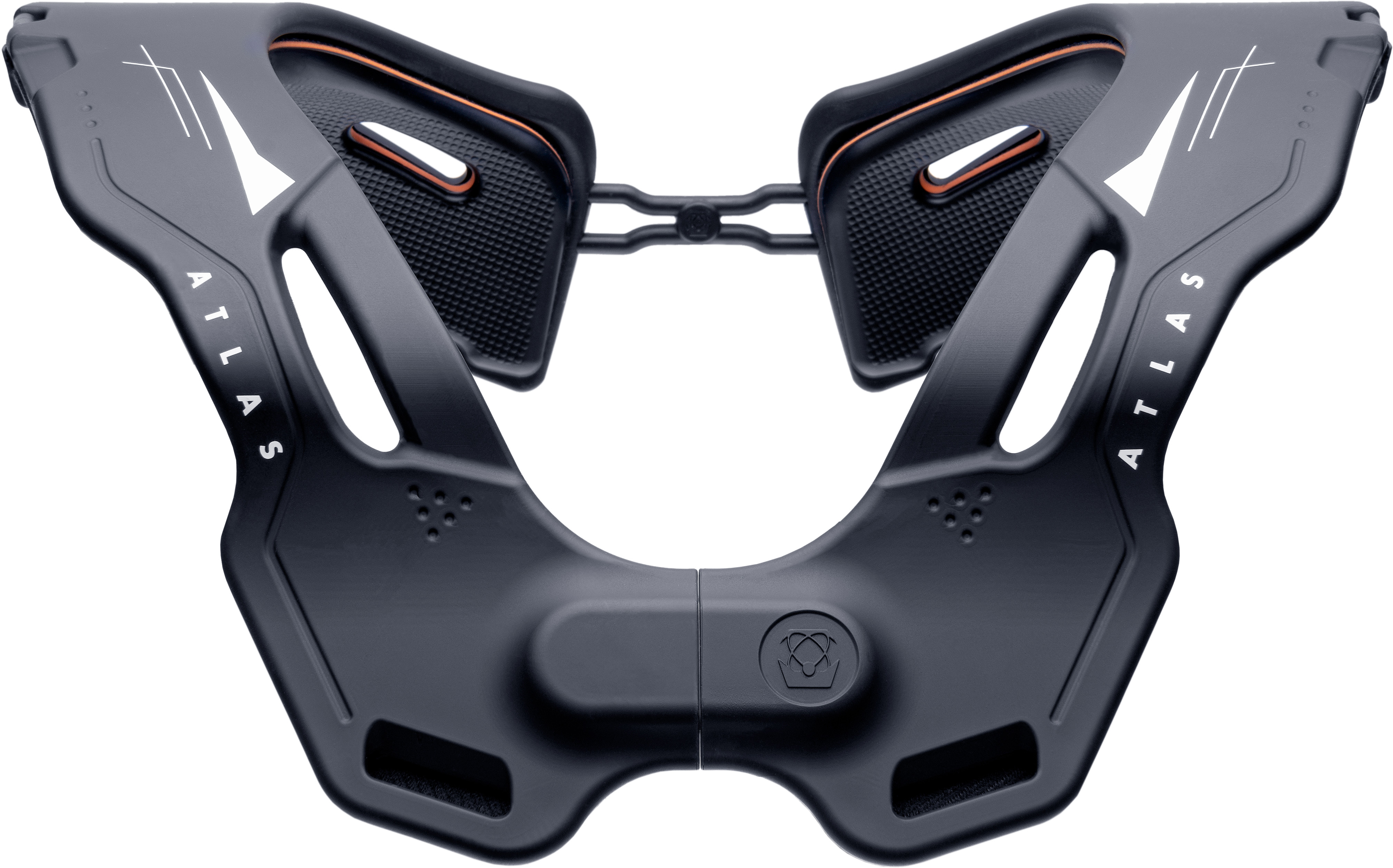 THE ATLAS VISION ANTI-COMPRESSION COLLAR IS THE FRONT ONLY CHEST PROTECTOR OF THE NECK PROTECTION WORLD. A DEVICE DESIGNED FOR ONE SPECIFIC PURPOSE, VOID OF ANYTHING THAT DOESNT CONTRIBUTE TO THAT SINGLE JOB. THE COMPLETE REIMAGINE OF THE NECK PROTECTION CATEGORY LEAP FROGS THE COMPETITION WITH A SIMPLIFIED FORM, ADDITION OF ADVANCED AND PROVEN MATERIALS, AND THE BIGGEST IMPROVEMENT IN USER EXPERIENCE SINCE THE BIRTH OF NECK PROTECTION. BY ONLY BEING BUILT UP OVER THE SHOULDERS, THE ATLAS VISION AIMS TO REDUCE COMPRESSION FORCES ONLY. BY REMOVING THE TRADITIONAL FRONT AND REAR SHELVES OF A NECK BRACE, RANGE OF MOTION IS INCREASED BY 66%, WEIGHT IS REDUCED BY 45% (VS ATLAS AIR), AND THE FIT OF THE PRODUCT CREATES A SUBSTANTIALLY WIDER AUDIENCE FOR THE PRODUCT - ENABLING US TO PROVIDE AN OPTION FOR ANYONE WHO COULDN'T PREVIOUSLY WEAR A TRADITIONAL NECK BRACE.