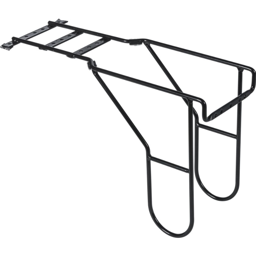 THE BASIL CARRIER EXTENDER IS A LUGGAGE CARRIER EXTENDER MADE OF STEEL WITH SIDE SUPPORTS, IN A MATT BLACK COLOUR. THIS EXTENSION FITS ON MANY CARRIERS OF DIFFERENT BICYCLE BRANDS. THE SELF-ASSEMBLY OF THIS LUGGAGE CARRIER EXTENDER, SO THAT DOUBLE PANNIERS CAN BE COMBINED WITH A CHILD SEAT, IS VERY EASY. CYCLING WITH GROCERIES OR TRANSPORTING LARGER GOODS ON THE BIKE? YOU CAN DO IT EASILY WITH THIS LUGGAGE CARRIER EXTENDER. THE SIDE SUPPORTS PREVENT PANNIERS FROM GETTING INTO THE SPOKES OF YOUR BIKE. IT'S SO SAFE! OF COURSE, THIS EXTENDER COMES WITH THE REQUIRED MOUNTING MATERIALS. IS THE LUGGAGE RACK EXTENDER IN FRONT OF YOUR REAR LIGHT? DON'T WORRY; YOU CAN ALSO MOUNT A REAR LIGHT (50-80MM) ON THE STAND HOLDER.