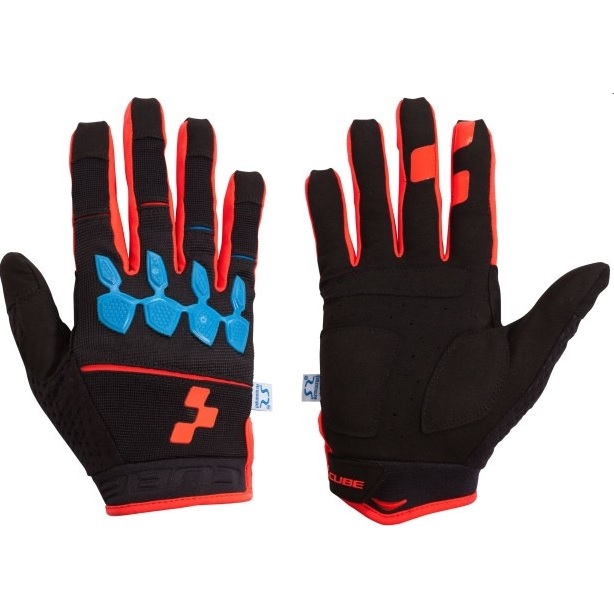 PERFECT PROTECTION. THESE LONG FINGER GLOVES ARE EQUIPPED WITH FLEXIBLE ARMOURGEL. ON IMPACT ARMOURGEL STIFFENS IMMEDIATELY, PROVIDING PROTECTION FOR THE BONES AND JOINTS OF THE HAND. IT OFFERS MAXIMUM FLEXIBILTY FOR THE RIDER. THE ARMOURGEL MAINTAINS ITS PROTECTIVE ATTRIBUTES EVEN IN COLDER TEMPERATURES. CUBE VENT SYSTEM KEEPS YOUR HANDS COOL AND DRY AS WELL AS PROTECTED. ABSORBENT FABRIC FOR WIPING OFF SWEAT. ROBUST MATERIALS INCLUDE REINFORCED PALM AND HOOK AND LOOP CUFF. THE PULL-ON SYSTEM IS A SPECIAL FEATURE. SEAMLESS SILICONE-PRINTED FINGERTIPS ENHANCE CONTROL ON BRAKE LEVERS AND SHIFTERS.
