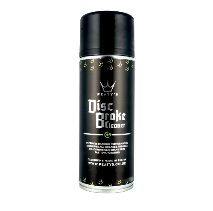PEATY'S DISC BRAKE CLEANER IS A UNIQUE, RAPIDLY SPRAYING BLEND OF FAST-DRYING SOLVENTS DESIGNED TO BLAST AWAY CONTAMINANTS SUCH AS DUST, GREASES AND OILS FROM BRAKING COMPONENTS. DESIGNED TO IMPROVE BRAKING PERFORMANCE AND RE-CONDITION TIRED BRAKE PADS. FOR USE ON ALL FUNCTIONAL COMPONENTS IN BRAKE ASSEMBLIES, INCLUDING CALLIPERS, DISCS AND PADS. IT’S ALSO READILY BIODEGRADABLE TOO SO YOU DON'T HAVE TO UNNECESSARILY DAMAGE THE ENVIRONMENT TO HAVE BANGING BRAKE PERFORMANCE!
