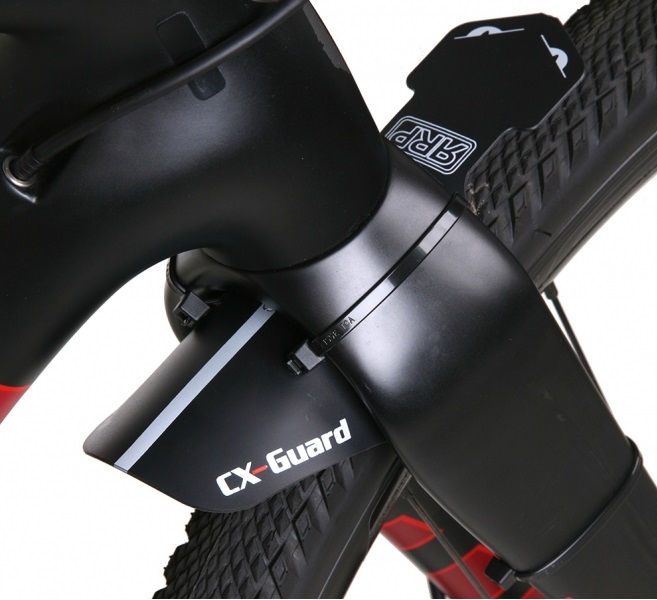 The CX-Guard is a simple front mudguard that significantly reduces the amount of spray and mud thrown up into your face and eyes it also stops the lower bearing seals from being hammered at high velocity increasing their durability and saving you money.