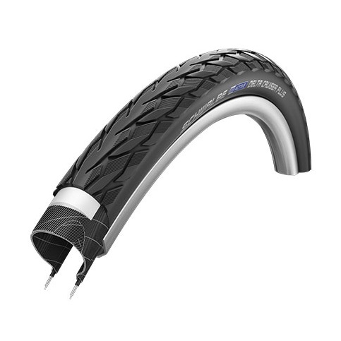 The classic center rib profile is versatile and offers pleasant rolling characteristics. Of course the Delta Cruiser is equipped with 50 EPI carcass K-Guard and reflective lines. We also offer it as the Delta Cruiser Plus with 3 mm Puncture Guard. Schwalbe Protection level 5. A recommendation for E-Bikes up to 25 Km/h.