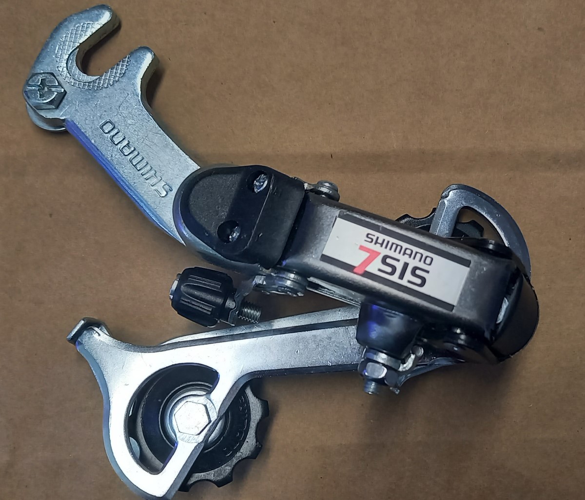 SHIMANO BASIC REAR MECH FOR 6 AND 7 SPEED BIKES. COMPLETE WITH MECH HANGER