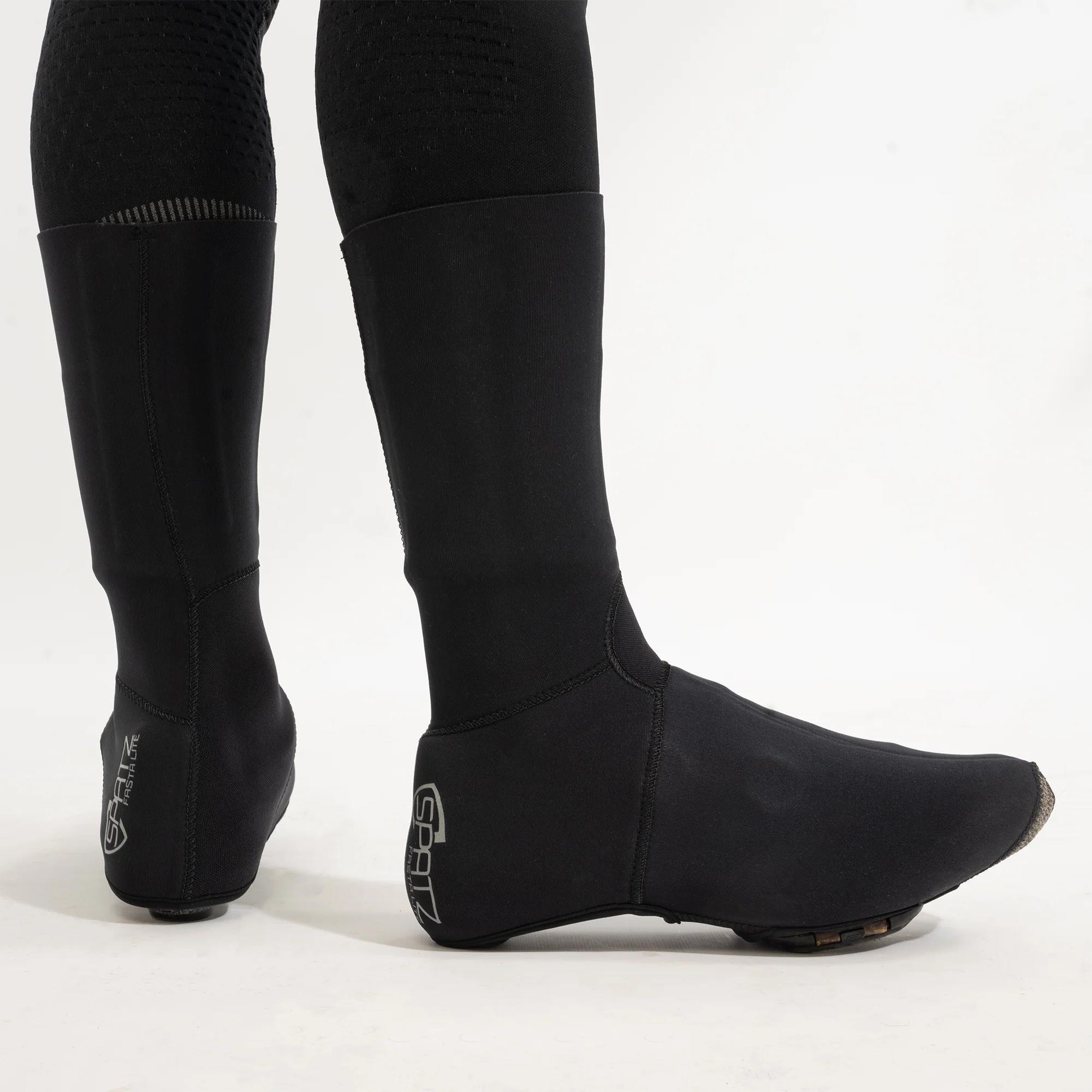 BORN FROM COUNTLESS HOURS IN THE SADDLE AND COLLABORATION WITH ELITE ATHLETES LIKE THE BROWNLEE BROTHERS AND WORLDTOUR TEAM ALPECIN-DECEUNINCK, THE SPATZ FASTA OVERSHOES REDEFINE RACE-LEGAL PERFORMANCE FOR ROAD AND GRAVEL USE. THESE OVERSHOES ARE TOUGHER, SLEEKER, MORE DURABLE AND MORE AERODYNAMIC THAN ANYTHING PREVIOUSLY SEEN IN THE SPATZ LINE; THEY FORM A CATEGORY OF THEIR OWN, DELIVERING ELITE-LEVEL PROTECTION AND FIT WITHOUT COMPROMISING SPEED OR WEIGHT.