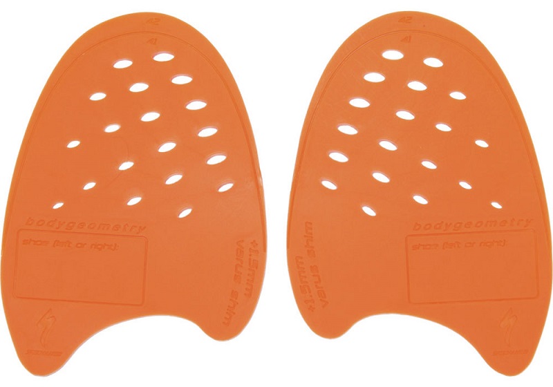 Allows simple removable in-shoe adjustment to the forefoot varus/valgus angle for optimum foot knee and hip alignment. >Reversible shims work for right or left application. >Vented for comfort. >Package includes two varus shims (orange) or two valgus shims (yellow) based on selection.