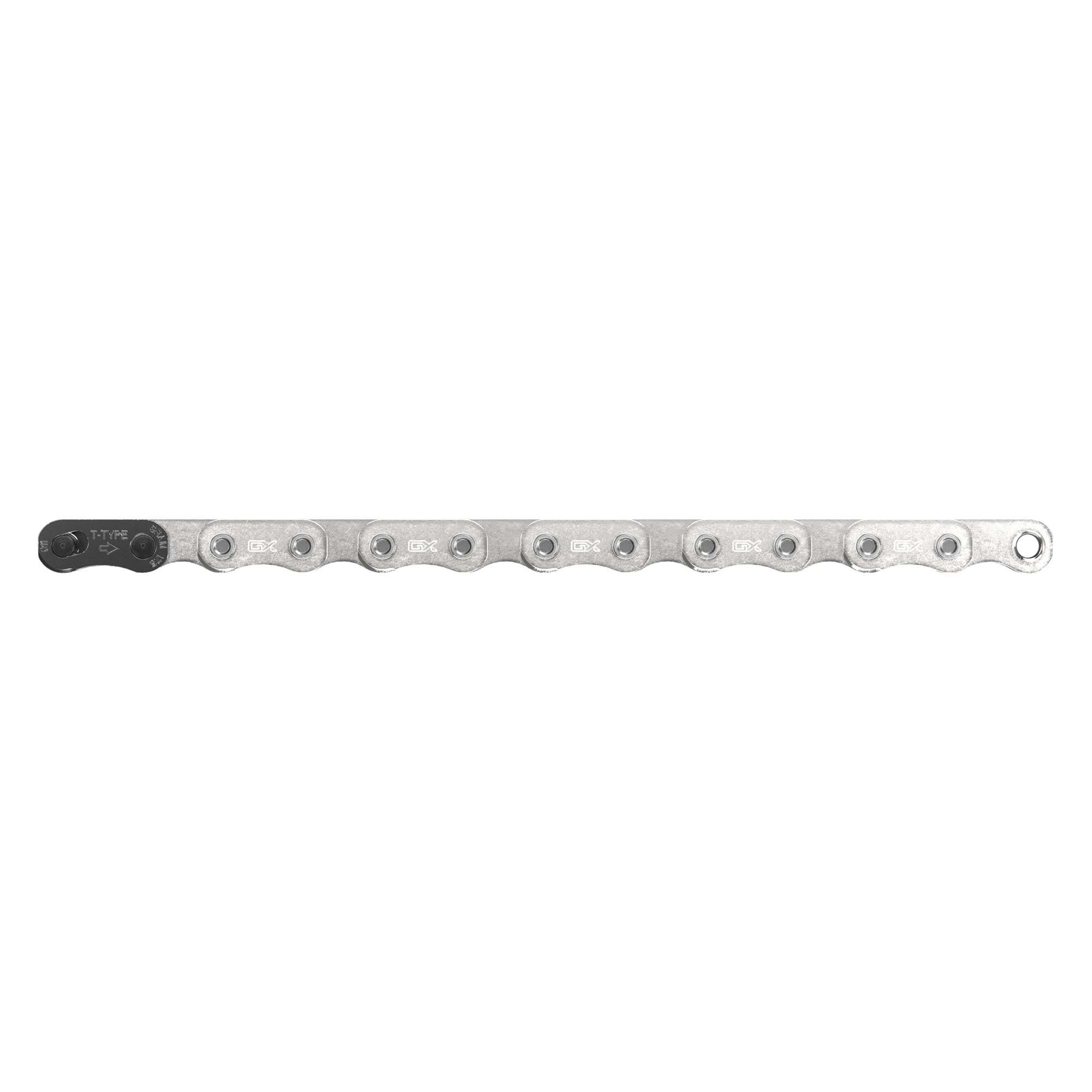 THE GX EAGLE TRANSMISSION (T-TYPE) CHAIN IS THE STRONGEST WE HAVE EVER MADE. SPECIFICALLY ENGINEERED TO OPTIMIZE EAGLE TRANSMISSION, THIS ALL-NEW T-TYPE DESIGN FEATURES A UNIQUE FLAT TOP. IN ADDITION TO THIS SHAPE MAXIMIZING SHIFTING PERFORMANCE AND UPGRADING THE AESTHETICS OF ANY BIKE, IT IS DEVELOPED SPECIFICALLY FOR THE ADDED TORQUE LOADS OF E-MTB THANKS TO ITS SOLID PINS THAT GIVE IT INCREDIBLE STRENGTH.